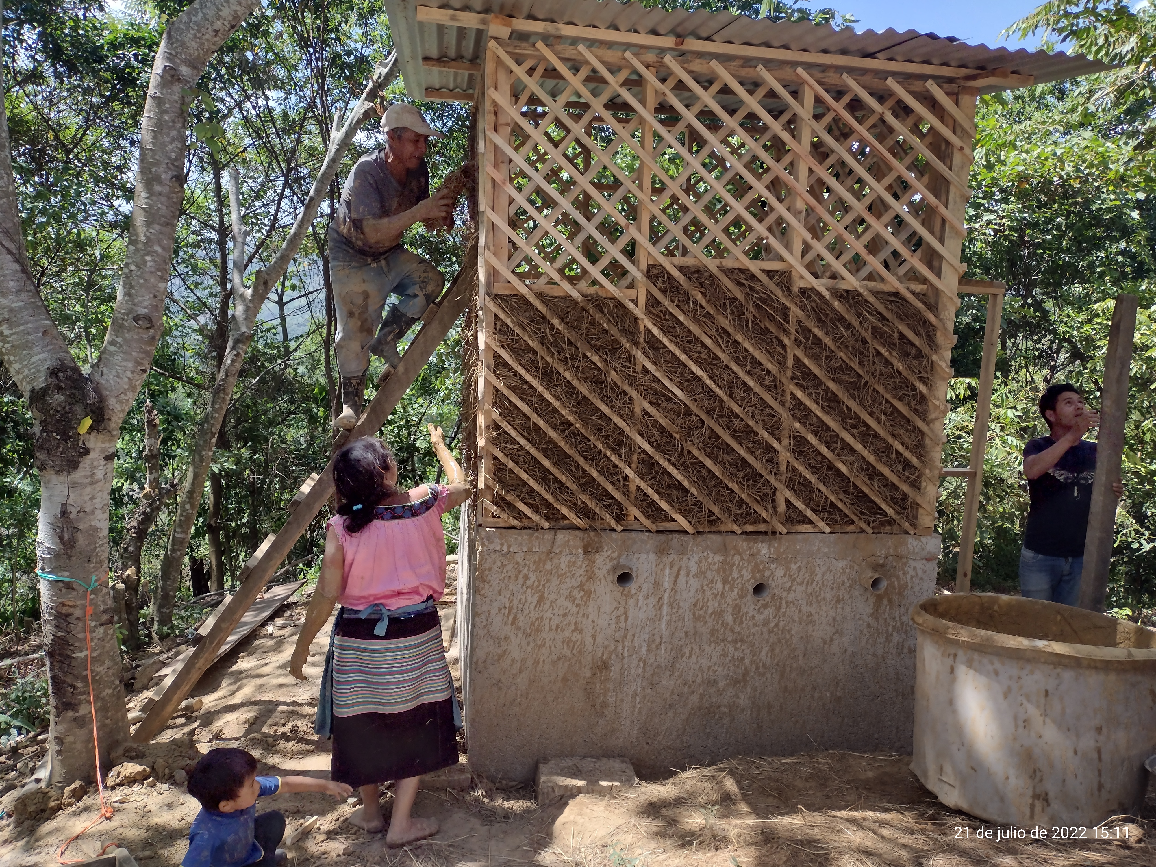 Posteriormente se llevó a cabo el trazo y selección del sitio, definidos por cada familia. La construcción incluyó talleres prácticos como elaboración de pacas para las paredes, repello y repello fino, además de un taller especializado en mantenimiento y operación para iniciar el uso del baño. Una vez concluida la construcción e iniciado el funcionamiento del sistema, Cántaro Azul brindó acompañamiento continuo durante un año para fortalecer el uso adecuado, resolver dudas y asegurar la apropiación del sistema.